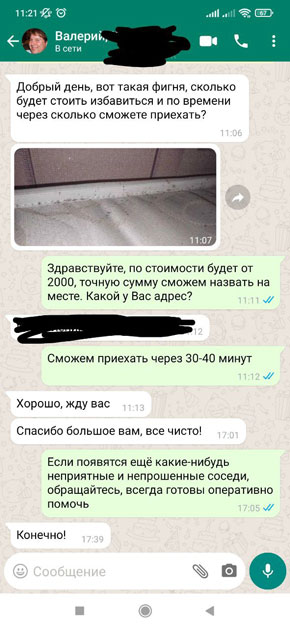 Если вы впервые столкнулись с проблемой вредителей, то не стоит переживать, даже самый запущенный случай решаем. Но заказывать дезинсекцию за 1000 рублей не стоит, поскольку никто не будет делать качественную работу за такую сумму.